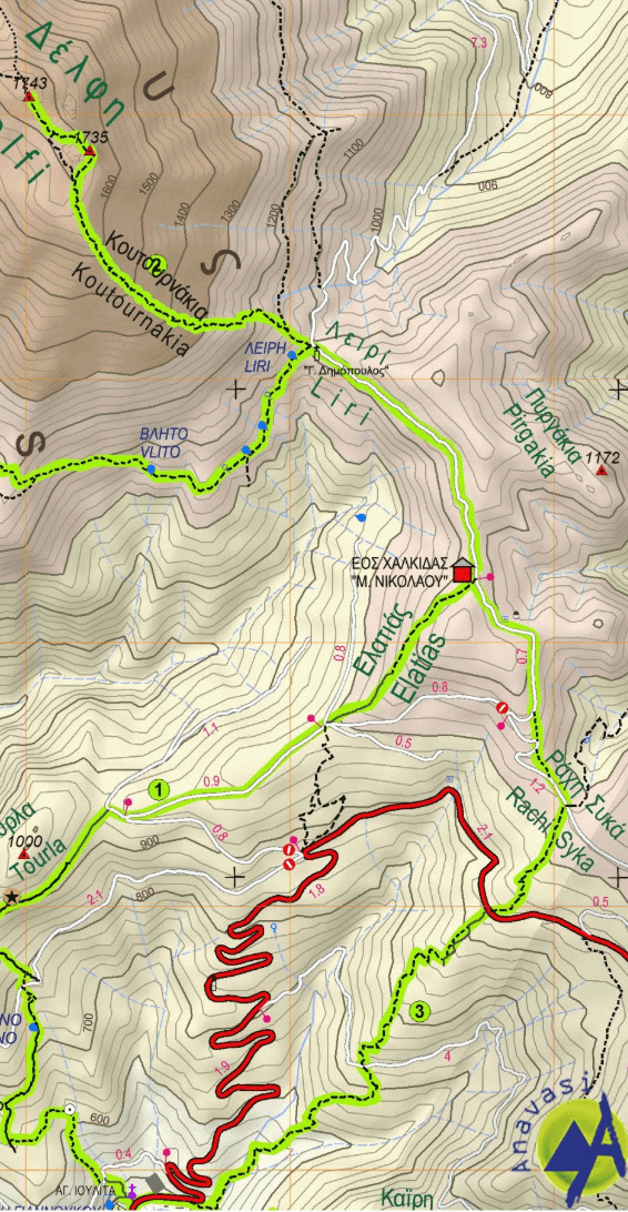 - Wandelkaart 2.2 Mt Kalidhromo Griekenland - Anavasi