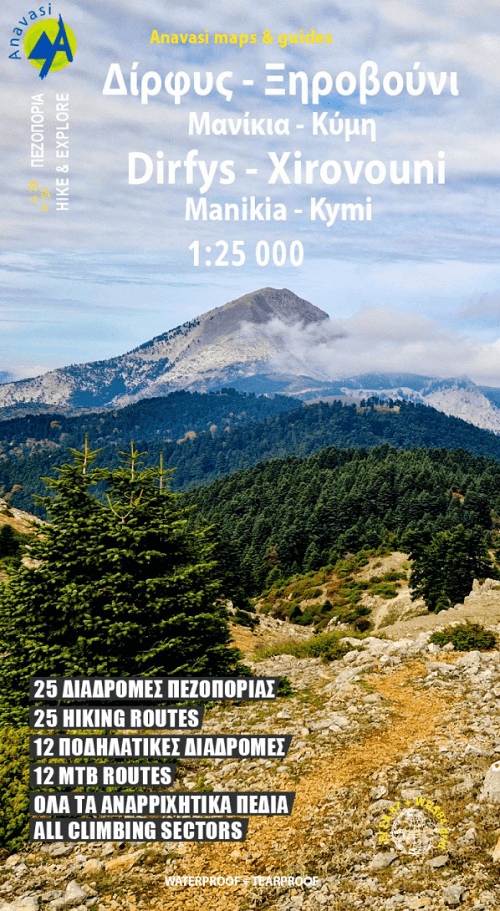 Wandelkaart, Fietskaart & Klimkaart Mt Dirfis & Mt Xerovouni