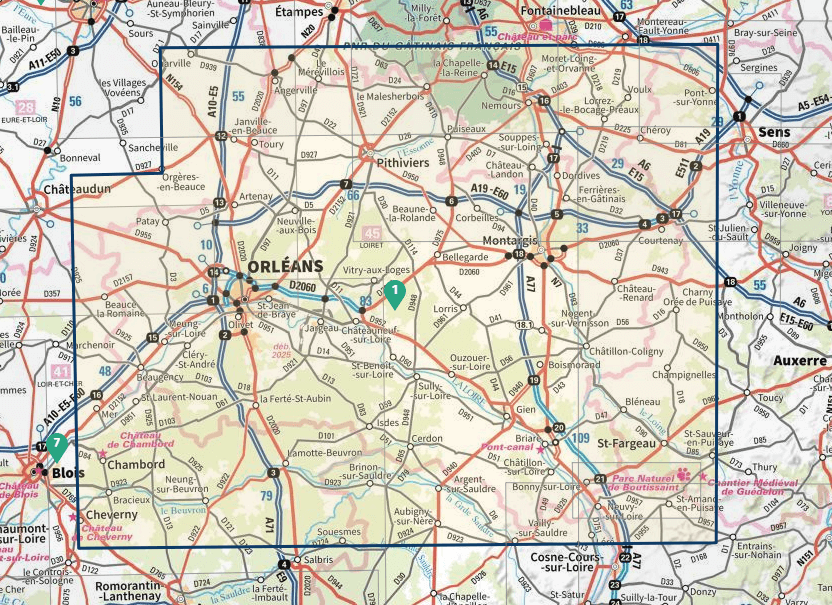 Wandelkaarten Centre Val de Loire, Frankrijk en Orléans van Institut Géographique National. Ideaal voor tochten in Frankrijk.