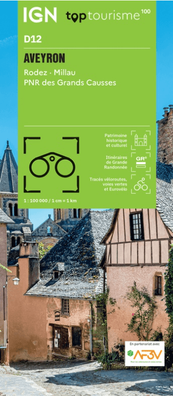 Wandelkaart FietskaartTOP100 D12 Aveyron Occitanië - IGN
