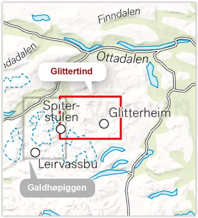 - Toepasselijke bergketen: Glittertind Massief, Jotunheimgebergte Noorwegen, Jotunheimen gebergte, Innlandet Noorwegen