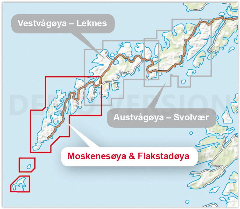 Productomschrijving: Dit is één van de drie unieke kaarten met een schat aan details die nog nooit eerder op de Lofoten is getoond. De terreininformatie op de kaart is gebaseerd op laserscanning vanuit vliegtuigen. Voor het eerst verschijnen berghellingen, grotere rotsen, waterwegen en gletsjers met een nauwkeurigheid die overeenkomt met de werkelijkheid.
