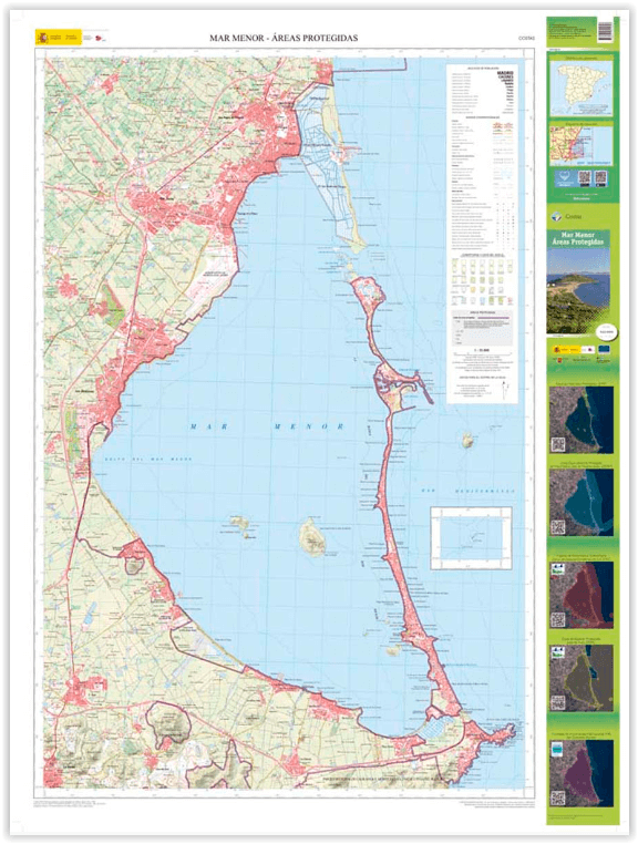 Kaart van Mar Menor, met aanduiding van de beschermde gebieden.