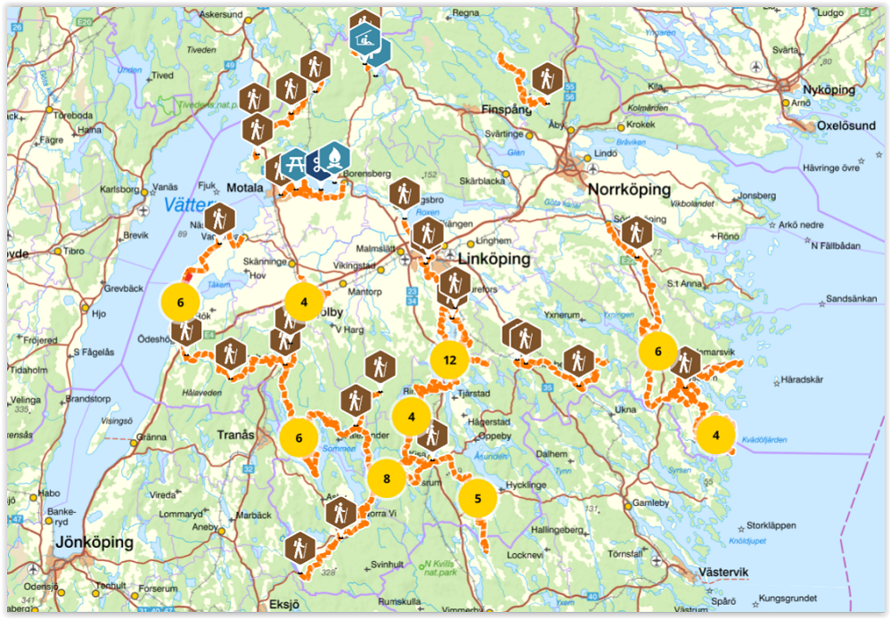 Wandelkaarten Östergötlands län, Zweden van Calazo Förlag. Ideaal voor tochten in Zweden.