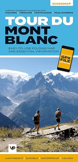 The Tour du Mont Blanc Guidemap from Vertebrate Publishing is a lightweight, waterproof, durable and easy-to-use folding map with 1:40,000-scale mapping for the anticlockwise TMB route. Includes route variations, an elevation profile and route planner, safety advice, terrain information and accommodation directory.