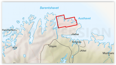 Er bevindt zich een herberg bij de vuurtoren van Kjönes, die meer dan 100 jaar oud is. Deze kaart reikt tot aan het Varangi Peninsula National Park.